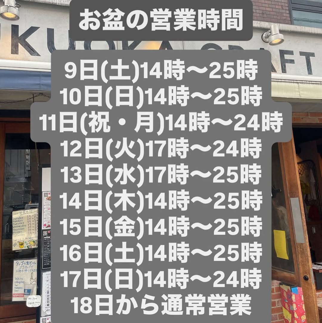 #大名 #大名グルメ #大名ディナー #福岡昼飲み #お盆営業時間